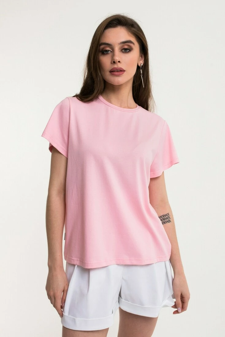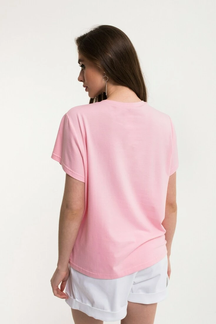 Ця рожева футболка дасть вам змогу виглядати стильно та жіночно. Пошита з м'якого, приємного на дотик матеріалу, який забезпечує максимальний комфорт у будь-яких умовах. Крім того, рожевий колір цієї футболки підкреслює ніжність і жіночність її власниці, а вільний крій дає змогу вільно рухатися і почуватися комфортно в будь-якій ситуації. Ця футболка стане відмінним вибором для повсякдення, а також для створення стильних образів на особливі випадки. Ідеально поєднується з джинсами, шортами, спідницями і навіть штанами.